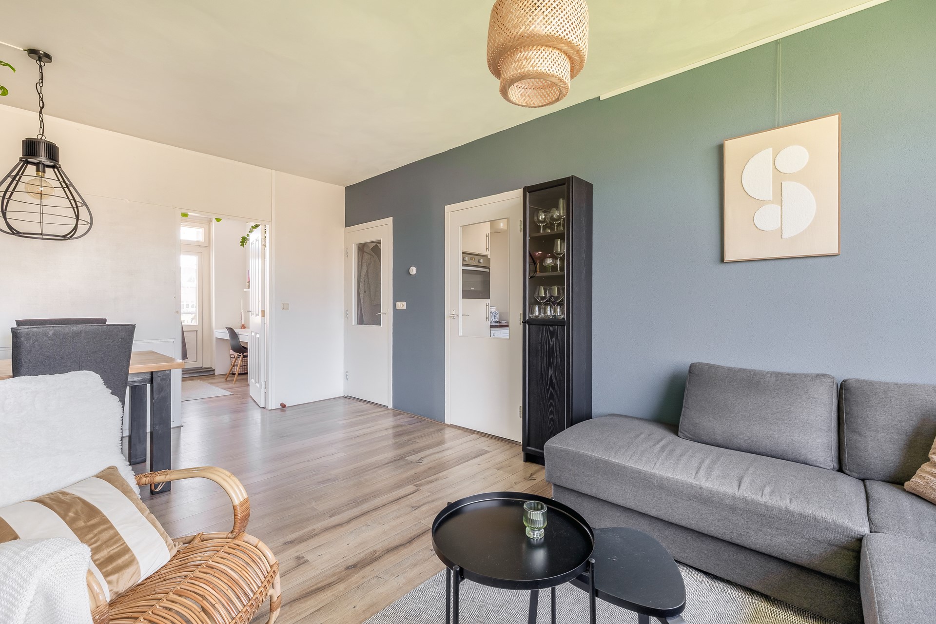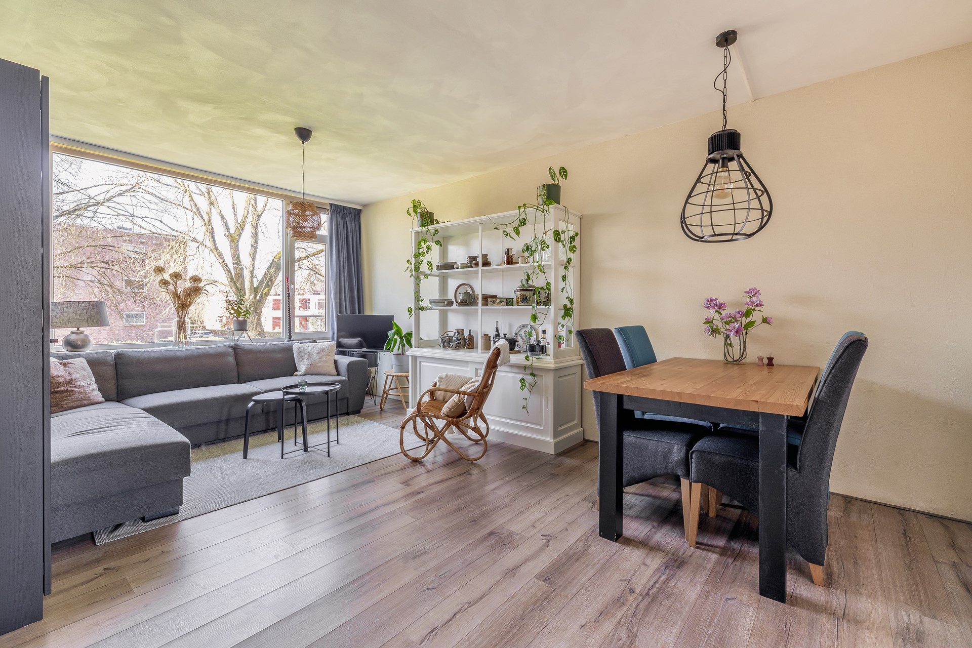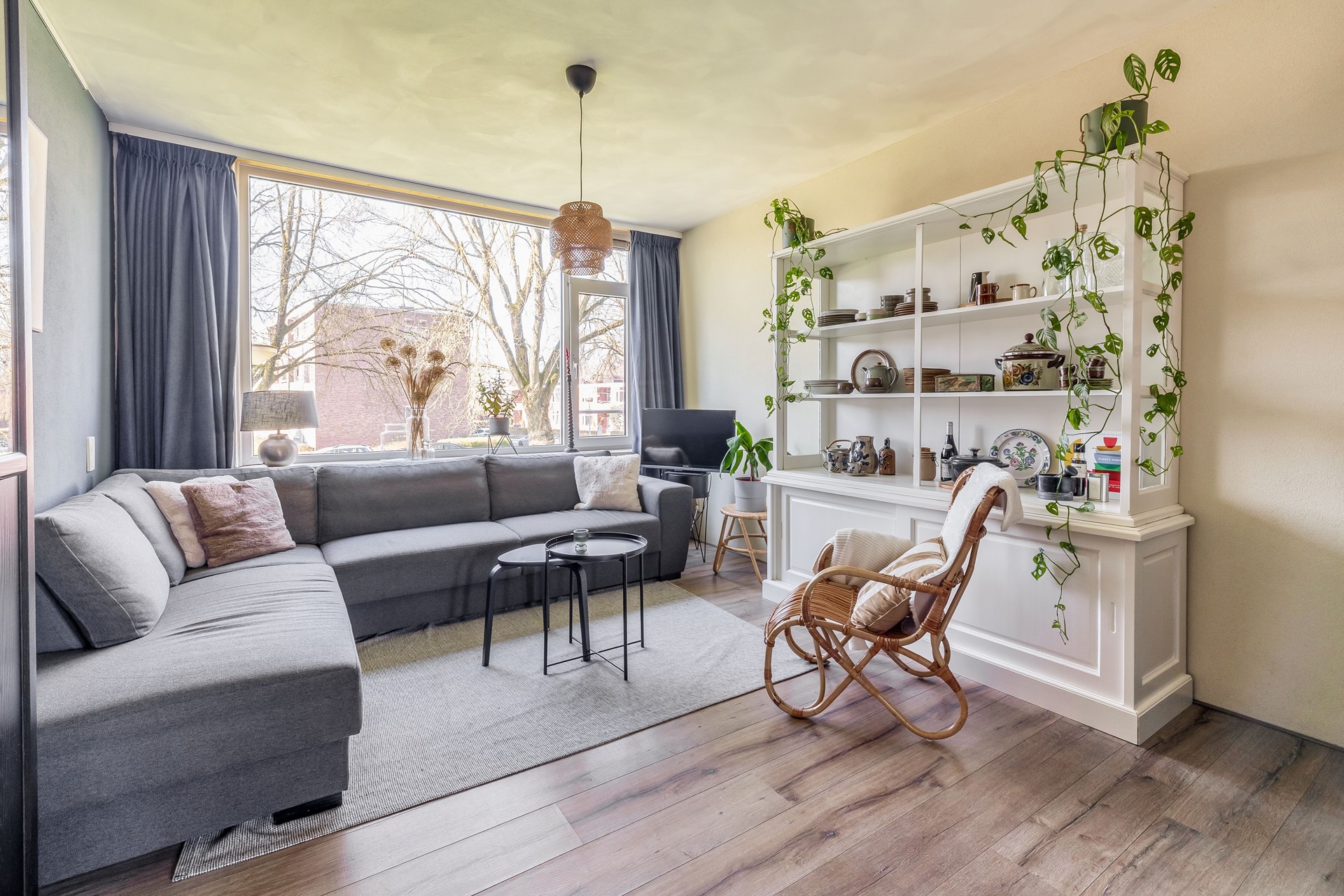 De woonkamer is ruim en licht en vormt het hart van de woning: een fijne plek om te ontspannen of gezellig samen te zijn.