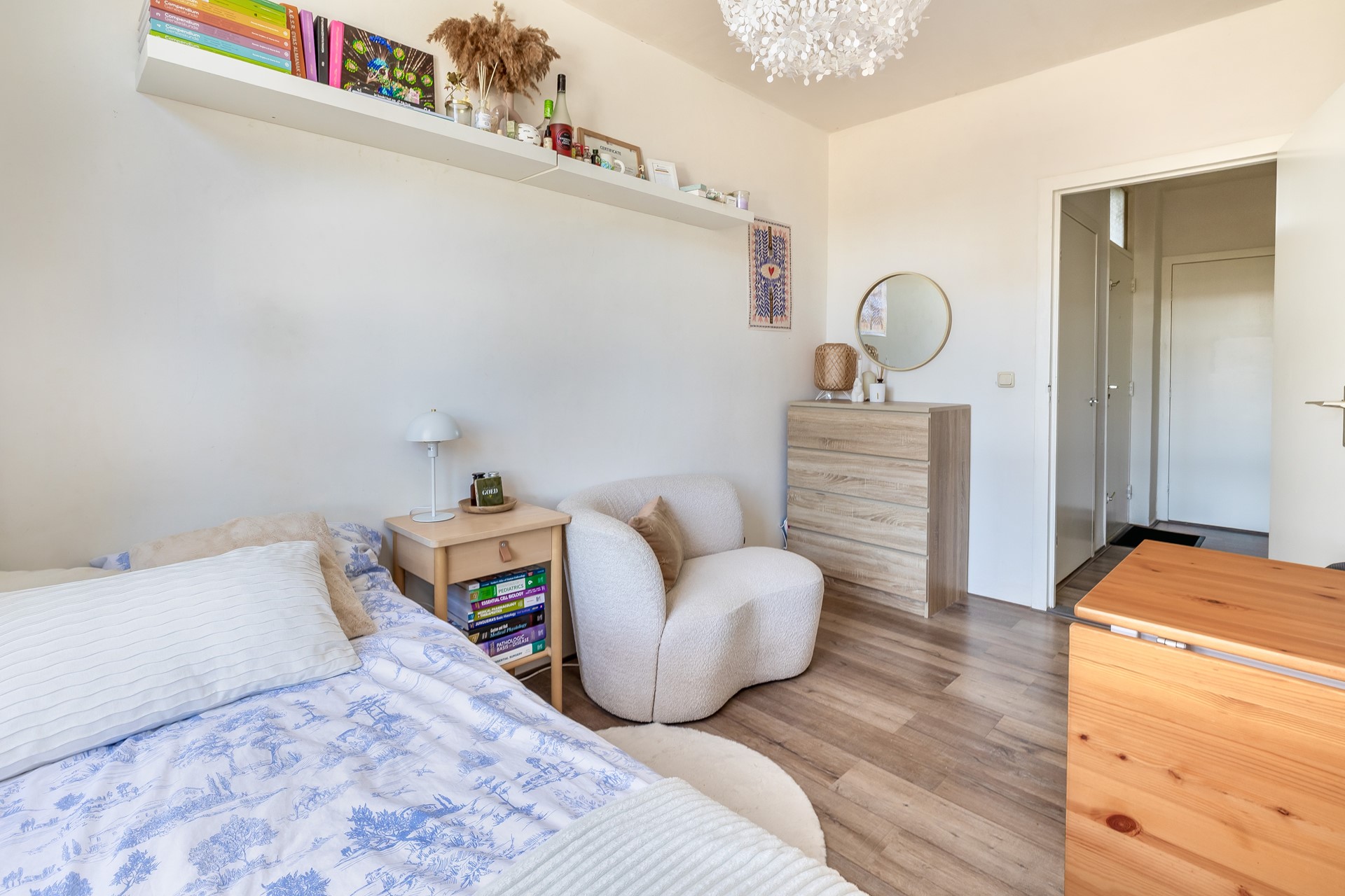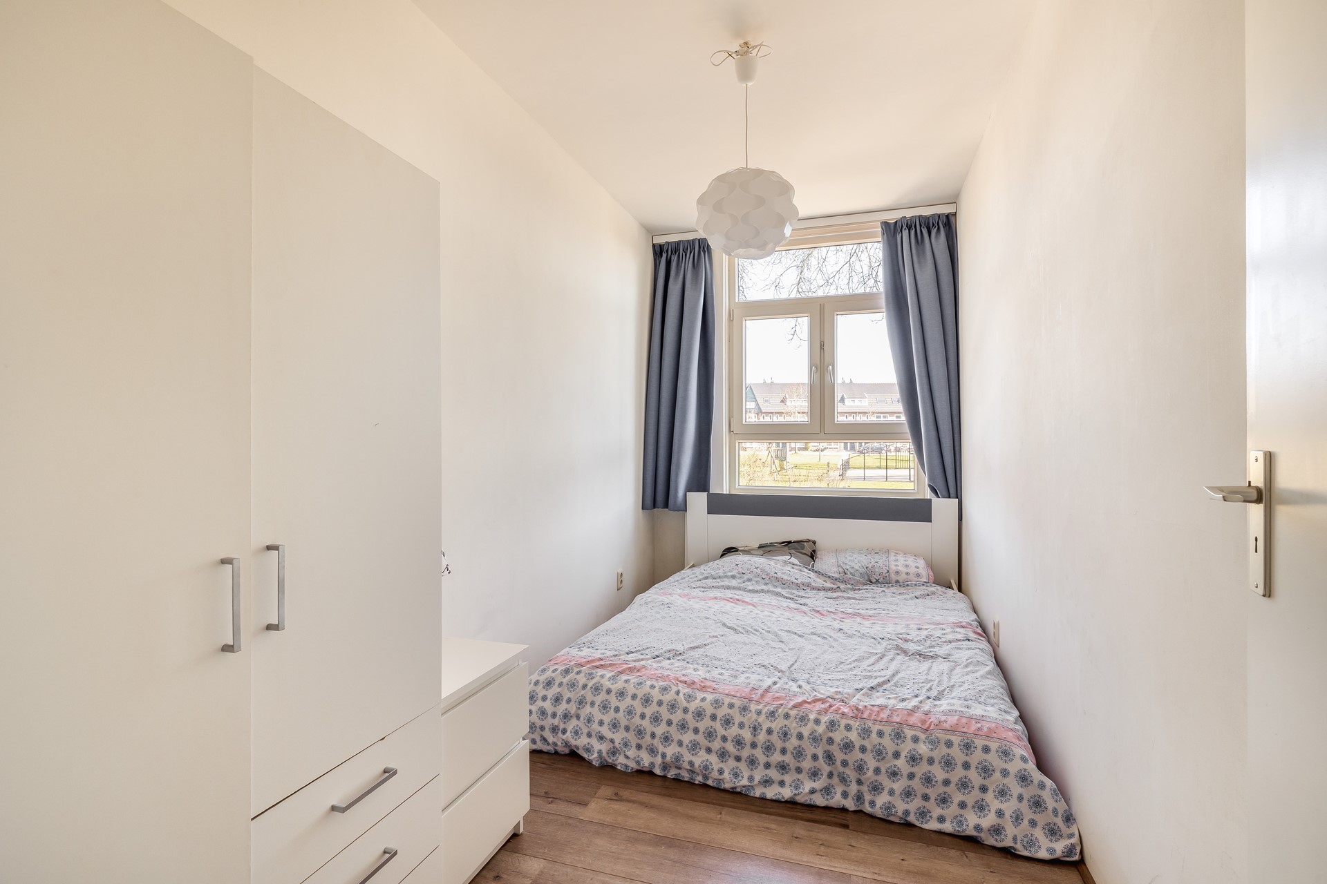 Het appartement beschikt over drie slaapkamers waarvan één ook als eetkamer gebruikt zou kunnen worden. Het is mogelijk om deze kamer eenvoudig bij de woonkamer te betrekken. Vanuit deze kamer heb je bovendien toegang tot het ruime tweede balkon.