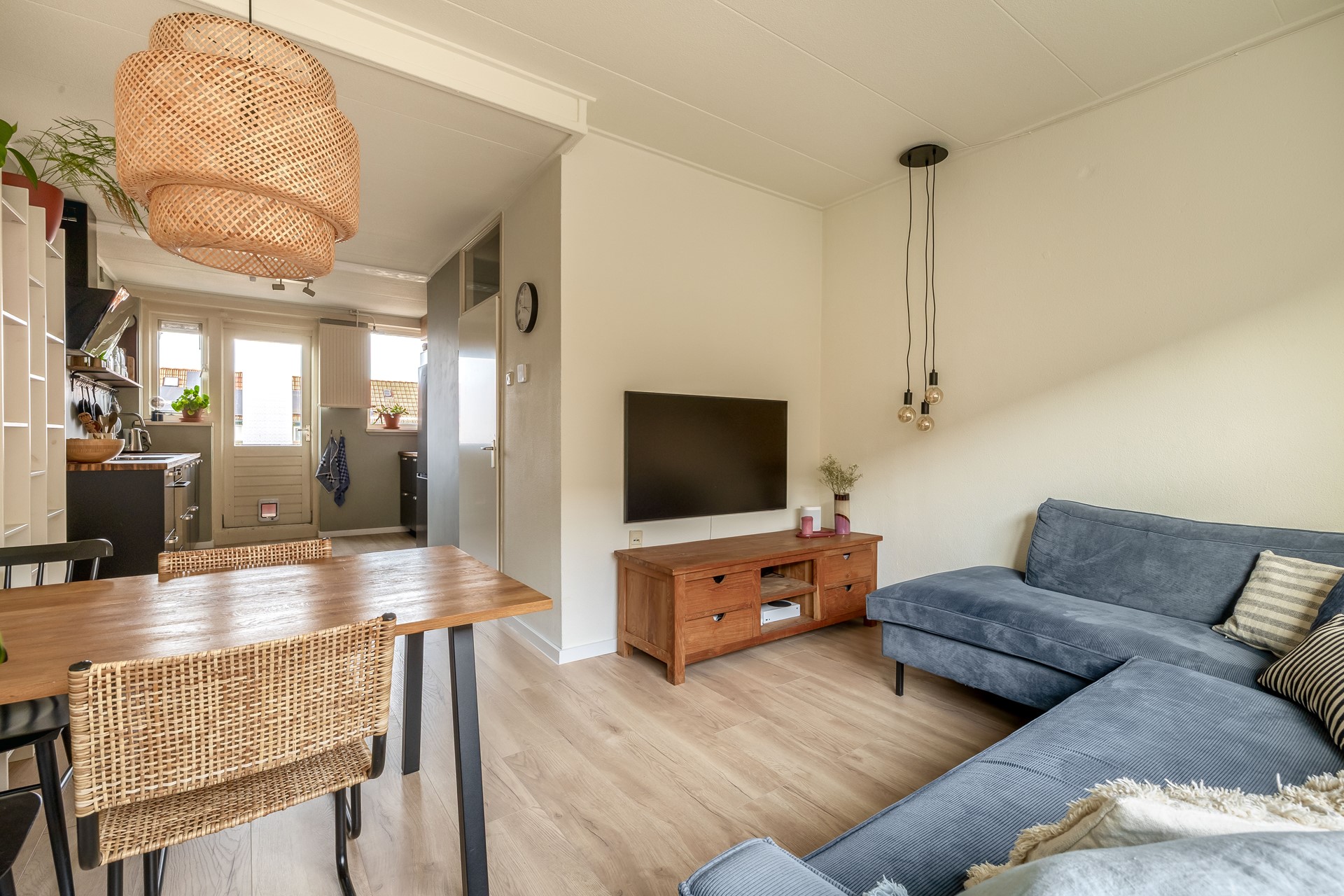 Via de entree kom je op de woonverdieping, waar de verschillende vertrekken samenkomen. De woonkamer voelt direct knus en licht aan en vormt een fijne plek om te ontspannen of gezellig samen te zijn. Aansluitend vind je de moderne open keuken, die in 2024 is geplaatst en voorzien is van diverse inbouwapparatuur. Vanuit de keuken stap je zo het balkon van 6 m² op. Hier kan je heerlijk buiten zitten en is ook plek om bijvoorbeeld een paar mooie planten neer te zetten.