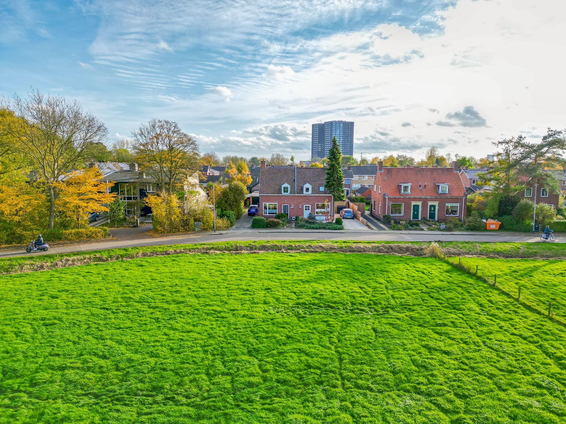 Ook buiten zit het goed. De achtertuin ligt op het zuiden en is een heerlijke plek om te ontspannen of te genieten van de zon. Aan de voorzijde kijk je weids uit over het weiland, waardoor je elke dag dat echte buitengevoel ervaart. Je zou bijna vergeten hoe dicht je tegen de binnenstad woont….