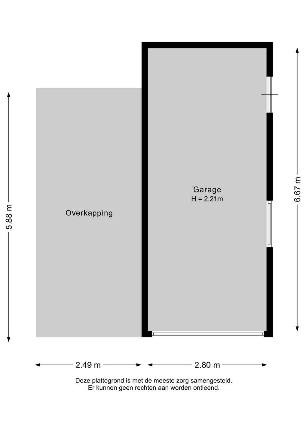 • Vrijstaande stenen garage met kunststof deur en oprit voor meerdere auto’s