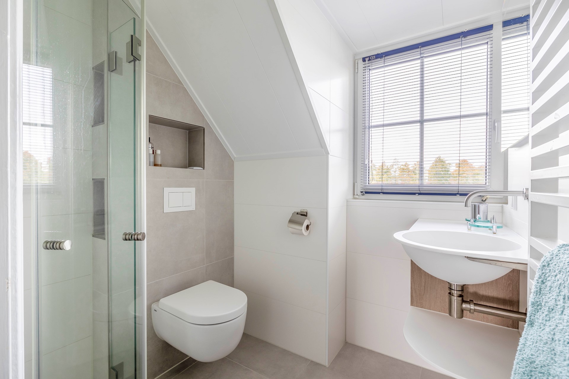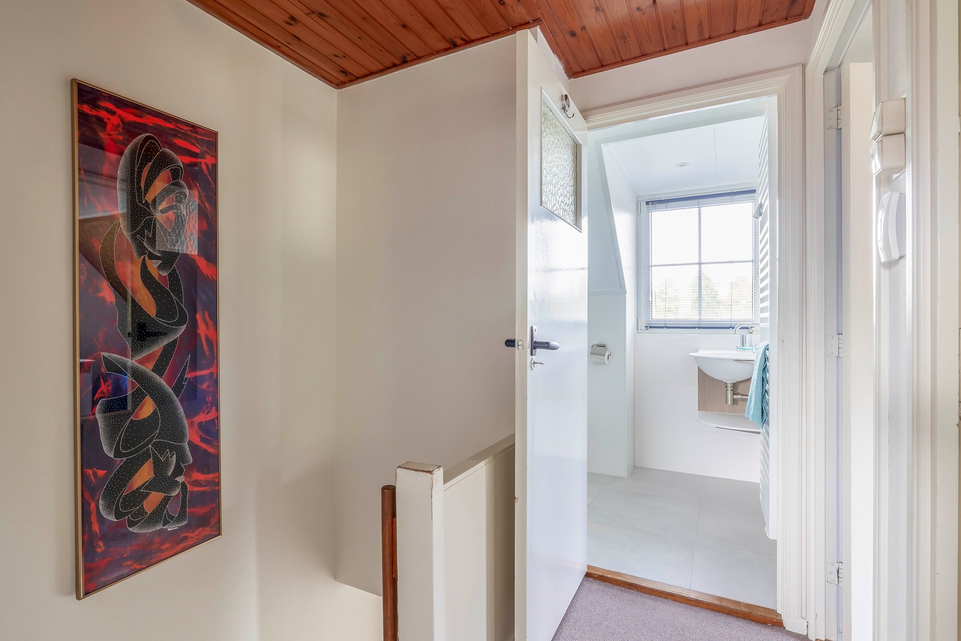 De woonkamer is licht en ruim (ca. 30 m²) en biedt vanaf de zithoek een prachtig vrij uitzicht over het weiland aan de voorzijde. De nette, gesloten keuken is voorzien van de volgende inbouwapparatuur: inductiekookplaat, afzuigkap en combi-oven. Aansluitend is er een volledig gerenoveerde en verwarmde bijkeuken. Hier vind je extra bergruimte, een tweede keukenblok met gootsteen, een vaste kast en plek voor een koelkast en vriezer, plus toegang tot de handige vlizozolder. Op de verdieping zijn drie slaapkamers en een moderne badkamer met inloopdouche, wastafelmeubel, toilet en handdoekradiator.