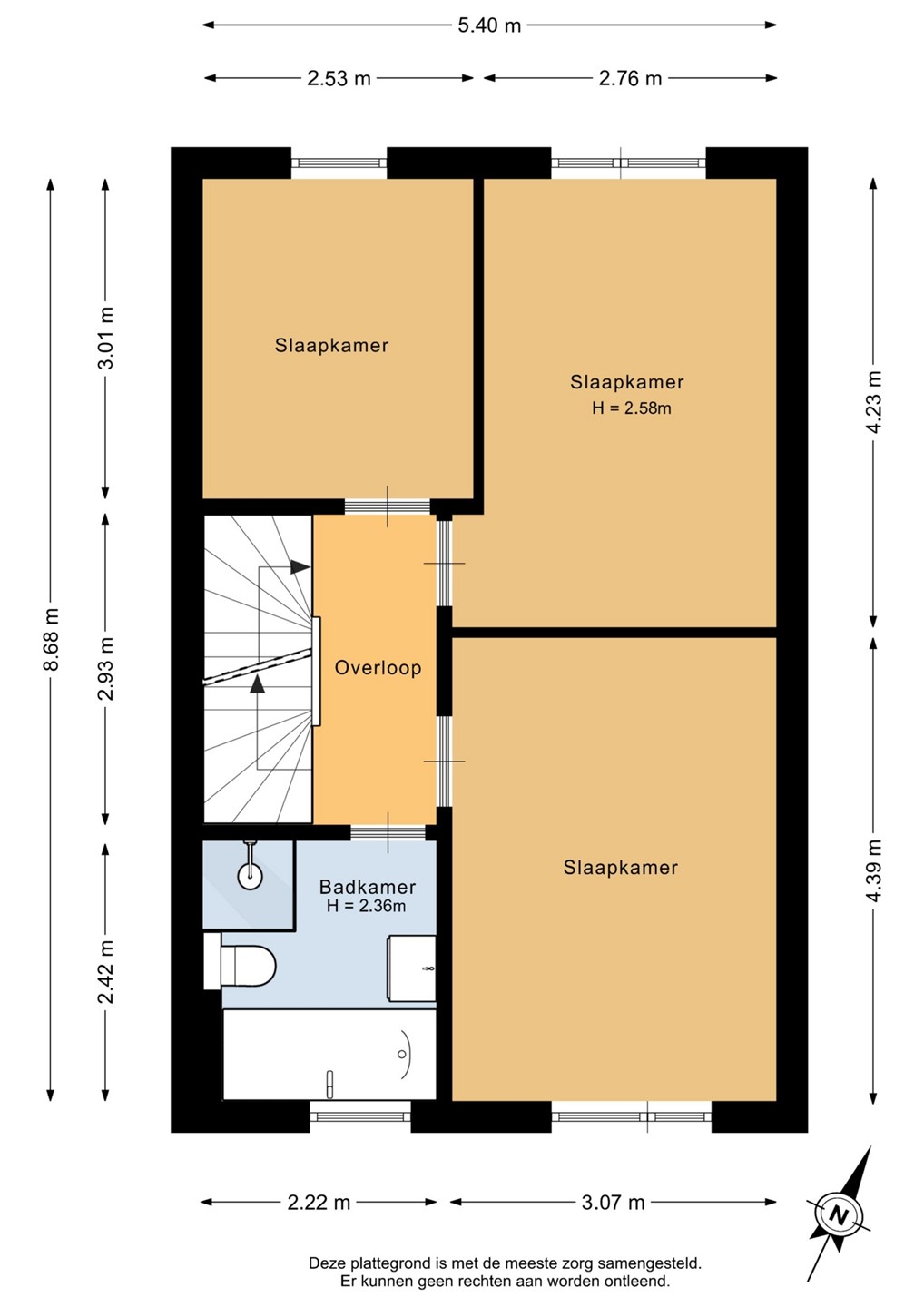 • Drie slaapkamers met mogelijkheid tot vierde slaapkamer van ca 22m²