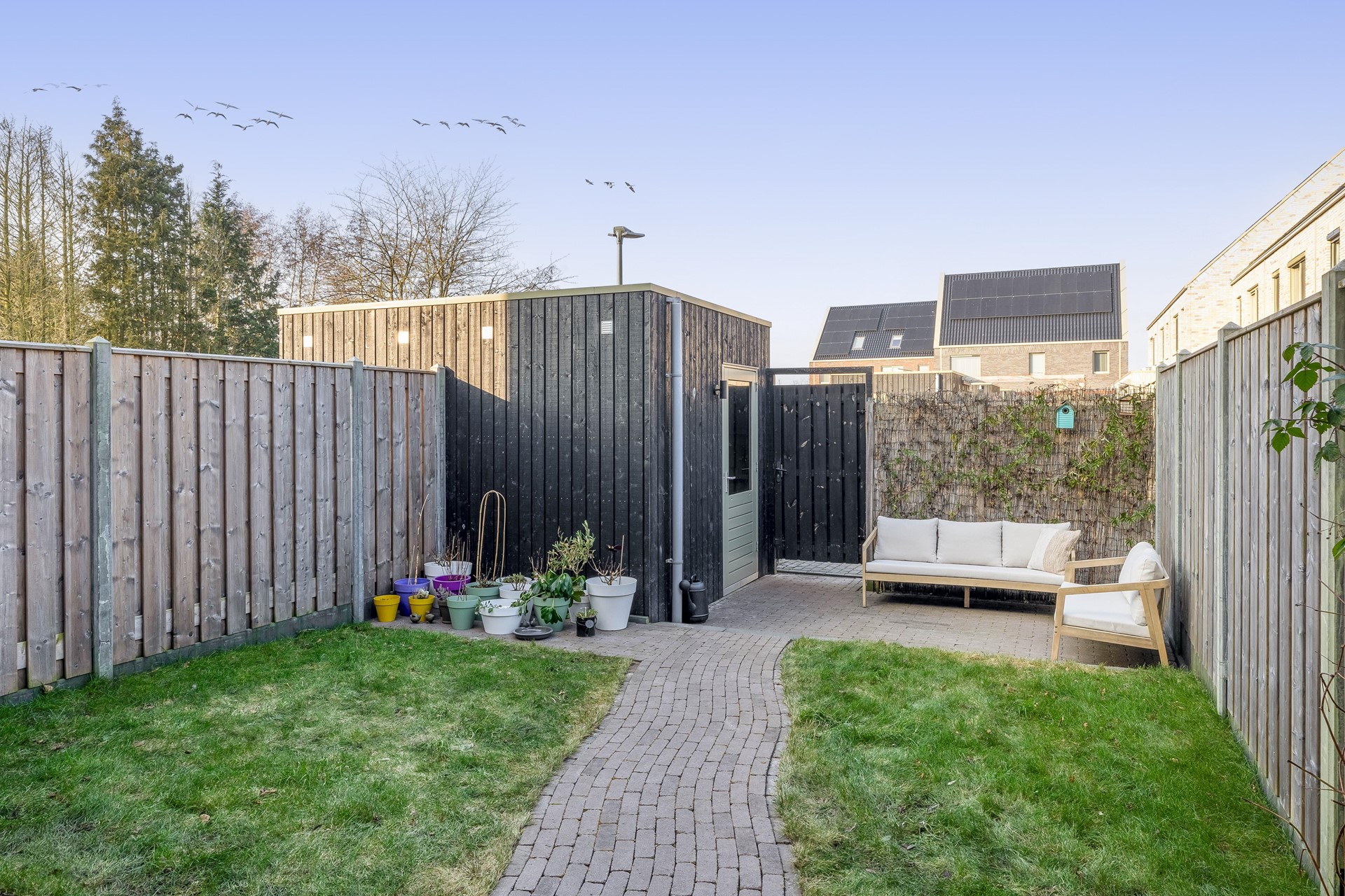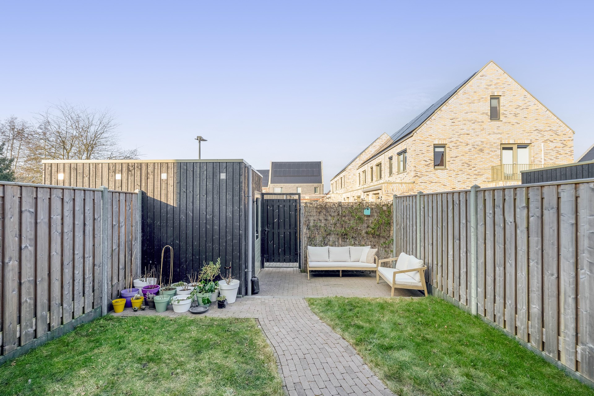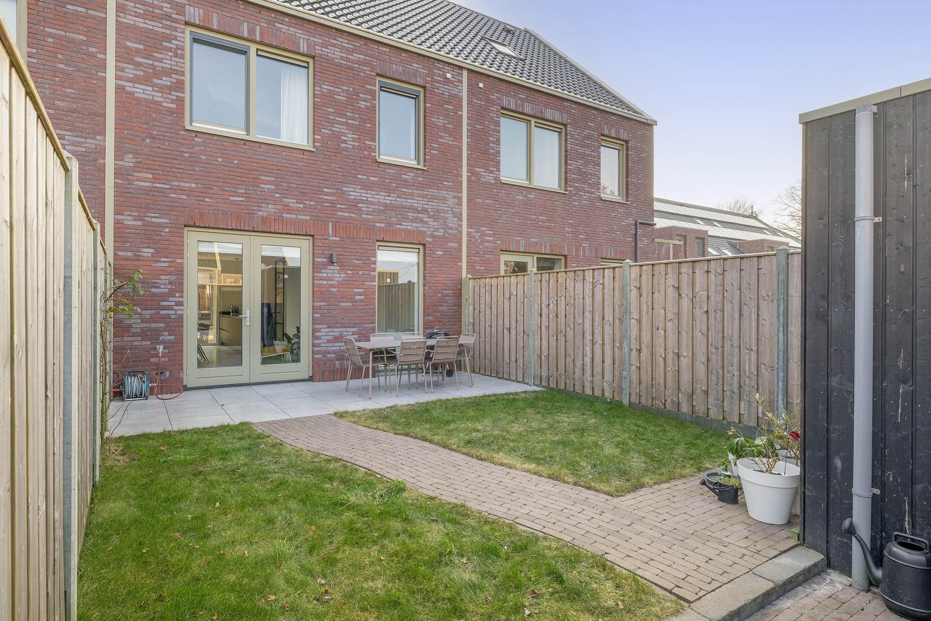 • Aangelegde achtertuin met berging en achterom