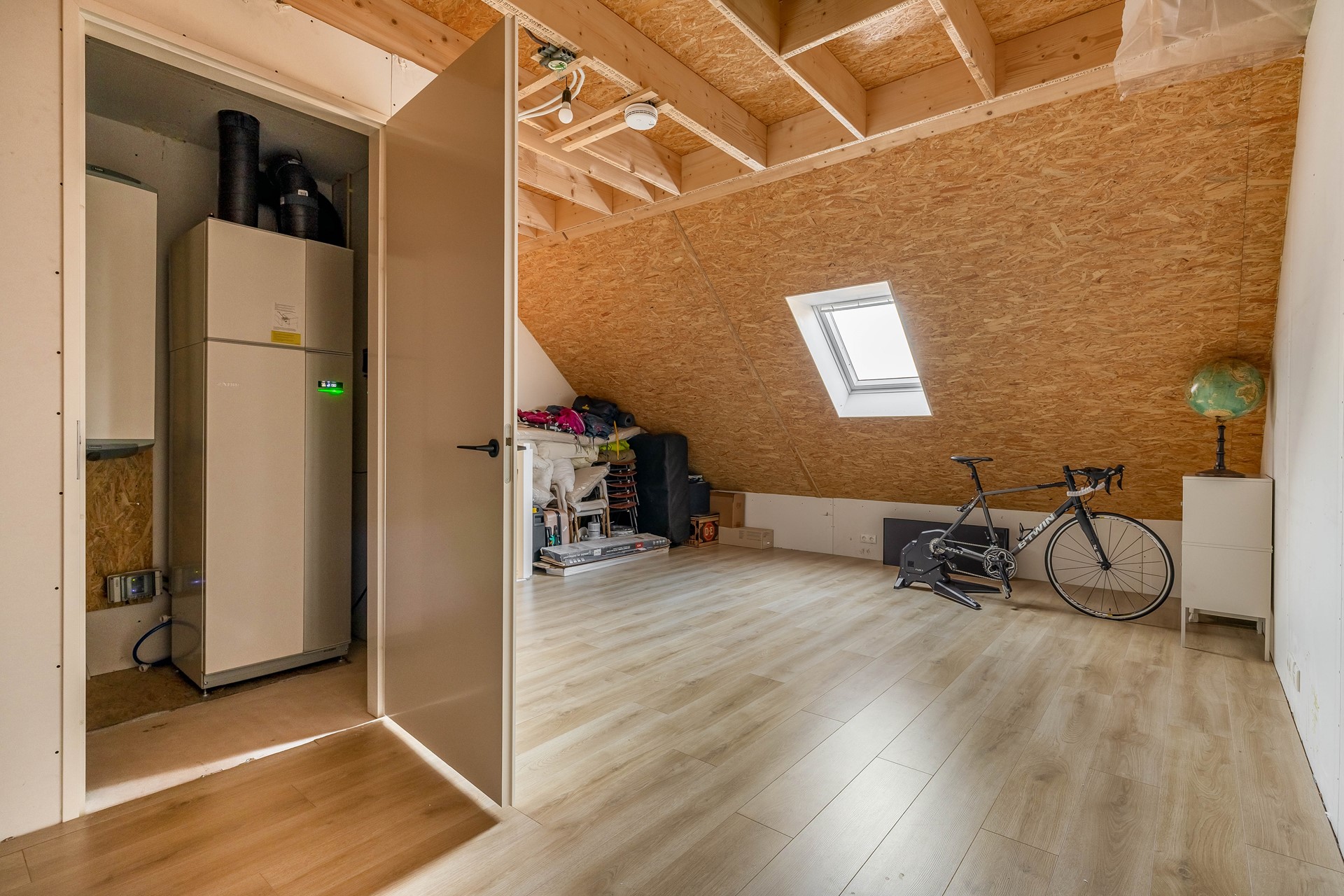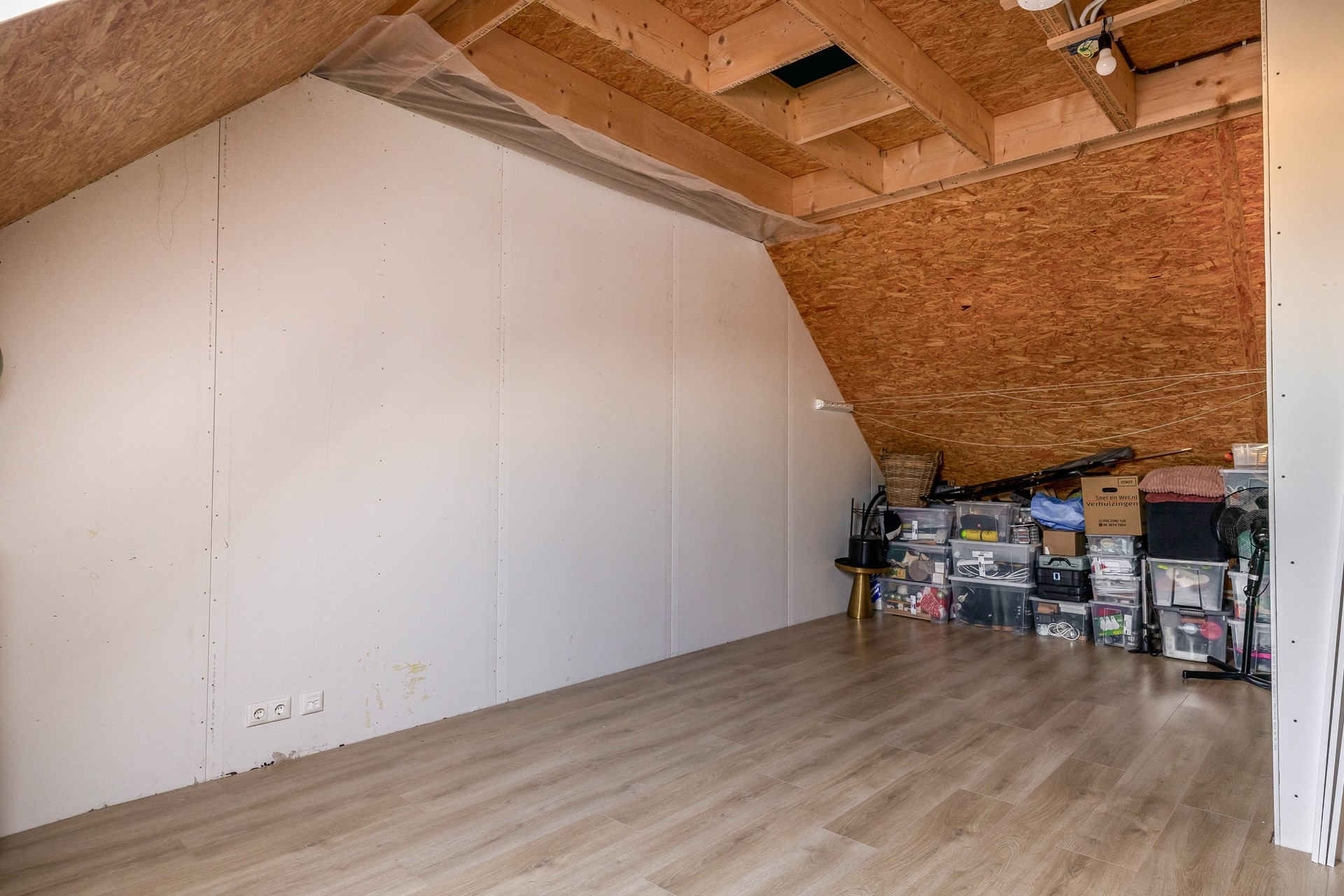 Op de eerste verdieping bevinden zich drie slaapkamers van resp. ca. 13,5, 12 en 8 m² en een moderne, sfeervolle badkamer met inloopdouche, ligbad, toilet, waskom en wastafelmeubel. De tweede verdieping bereik je via een vaste trap en biedt de mogelijkheid voor een ruime vierde slaapkamer van ca. 22 m², ideaal als tienerkamer, werkruimte of logeerkamer. Daarnaast is er een praktische berging met aansluitingen voor de wasmachine, droger en waterontharder. Hier is ook de ventilatieluchtwarmtepomp met WTW-systeem geplaatst. Er is een vliering aanwezig voor extra bergruimte.