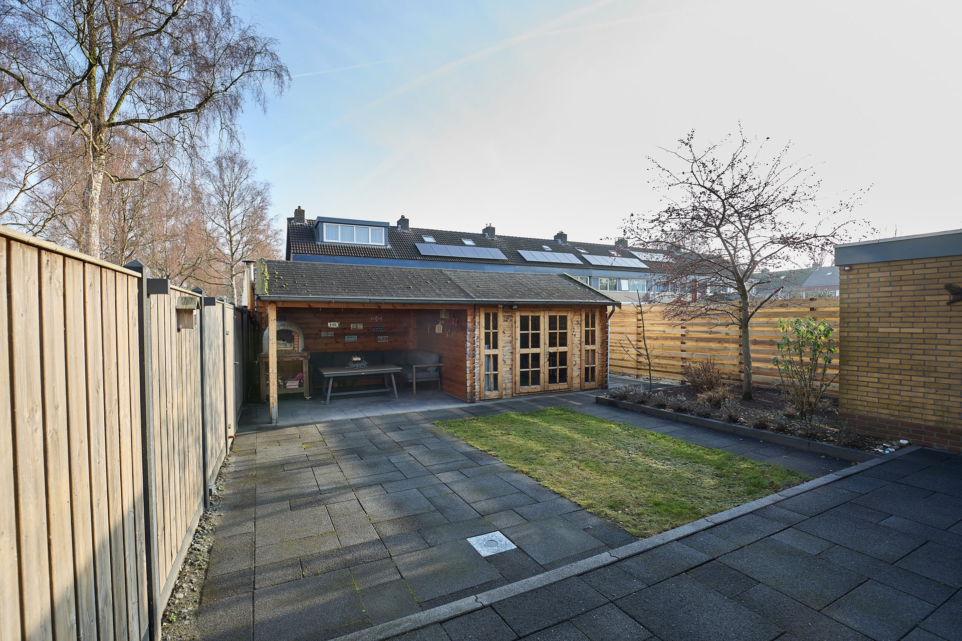 • Verzorgde achtertuin op het oosten met berging en overkapping