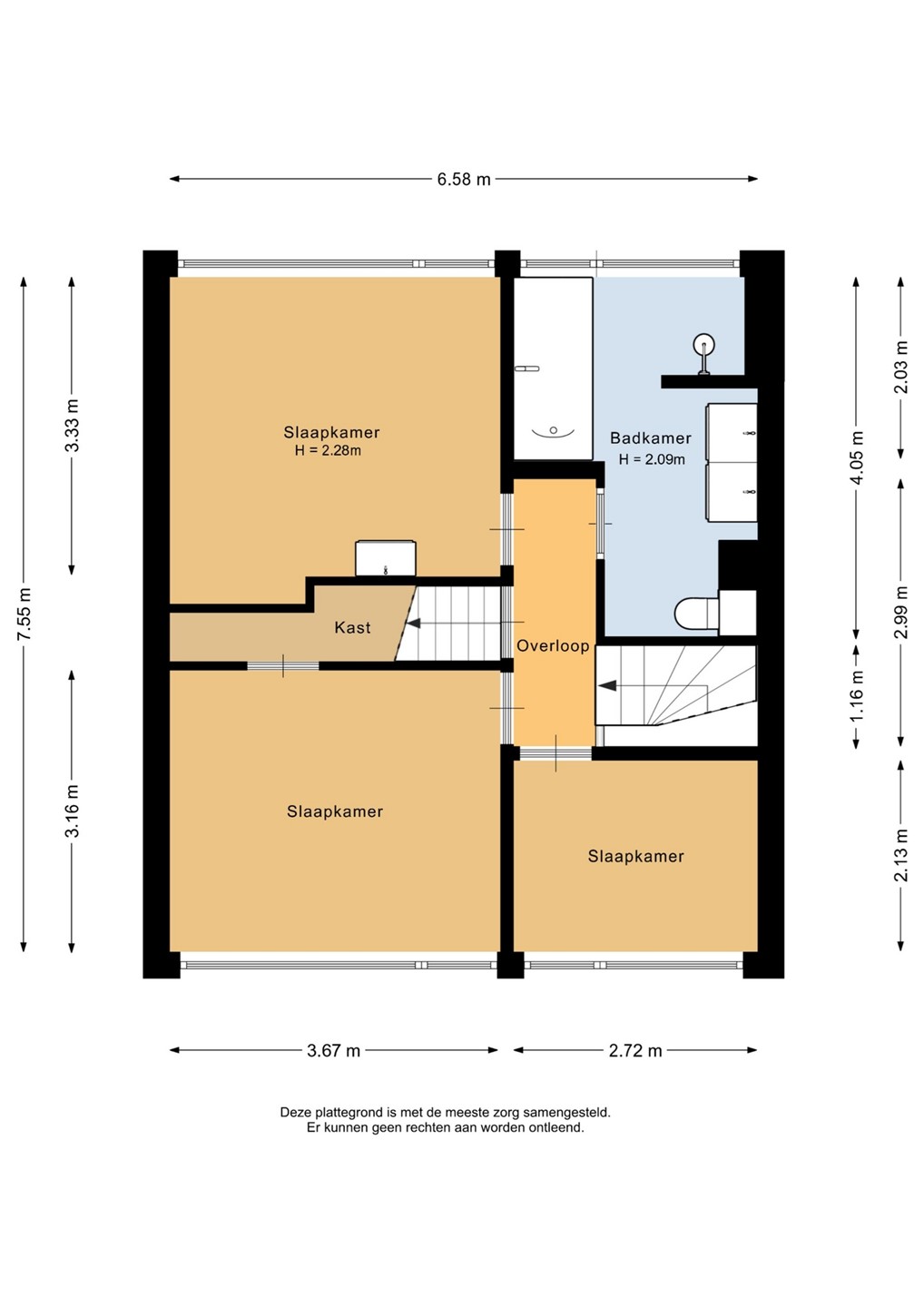 • Drie slaapkamers + ruime zolder met vaste trap