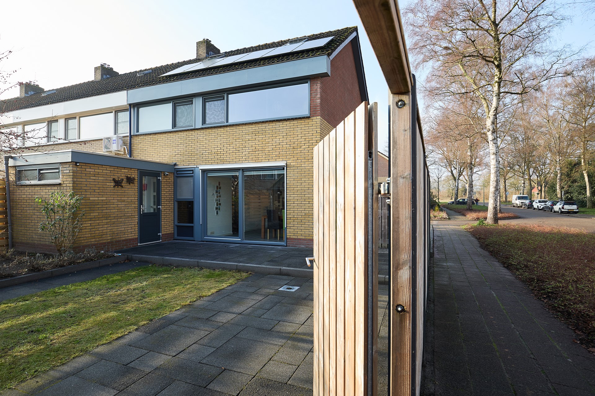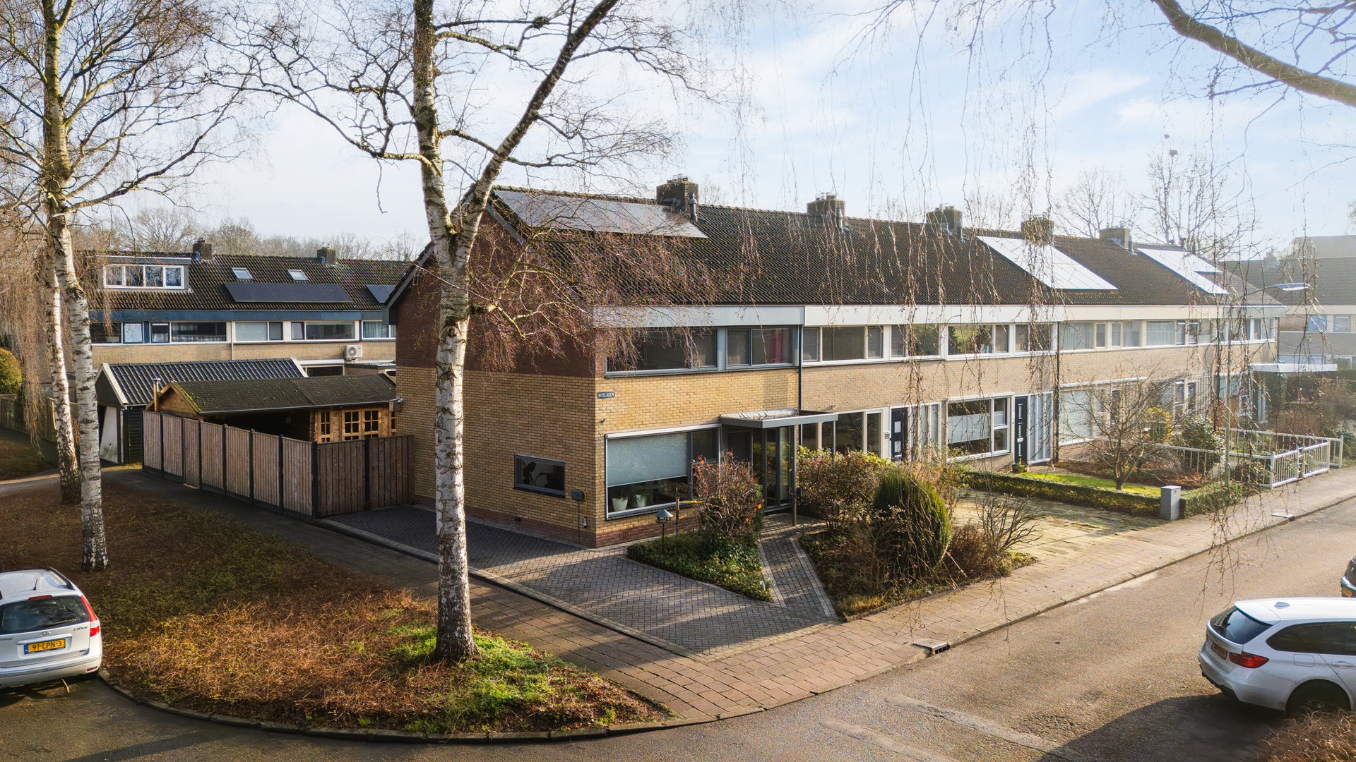 Buiten geniet je van een verzorgde en onderhoudsarme achtertuin op het oosten van circa 115 m², met een achterom en een vrijstaande houten berging met sfeervolle overkapping. De voortuin is netjes aangelegd en op de eigen oprit is ruimte om twee auto’s te parkeren.
